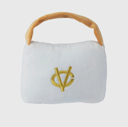White Chewy Vuiton Purses Squeaker Dog Toy