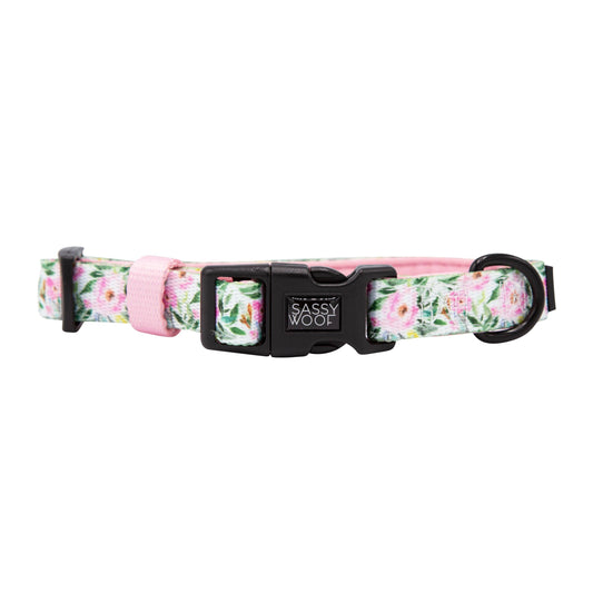Western Tooled Leather Dog Collar - Pink Turquoise Beaded