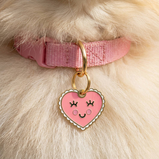 Gold Enamel Dog Tag w/ Scannable Pet ID - Pink Heart Charm