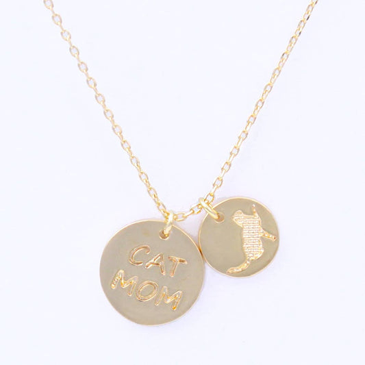 Cat Mom Coin Charm Pendant Necklace