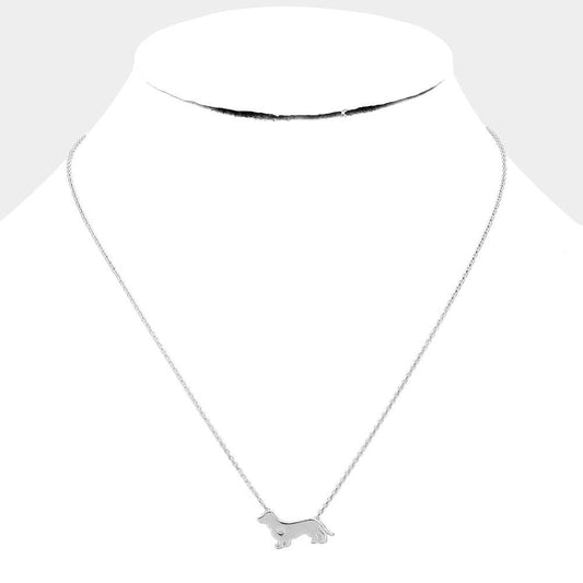 White Gold Dipped Dachshund Dog Pendant Necklace