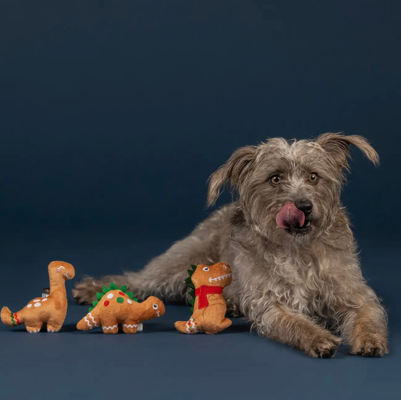 Saur-prise! PetShop by Fringe Studio's "Baking Spirits Bright" 3 piece mini plush toy set is perfect for the pup that likes to play all day. Made with a loud squeaker and crazy crinkle paper in each toy, this trio is the sweetest treat.