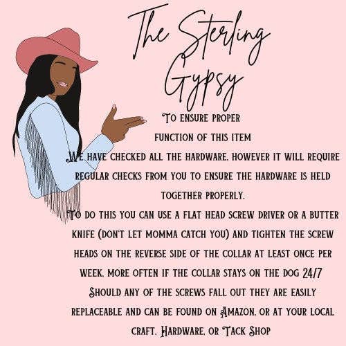 PLEASE MEASURE YOUR DOGS NECK WITH A PAPER OR FABRIC TAPE MEASURE TO ENSURE APPROPRIATE SIZING and message us with any questions! WE do not accept returns or exchanges so it is very important for you to ensure you have the proper sizing