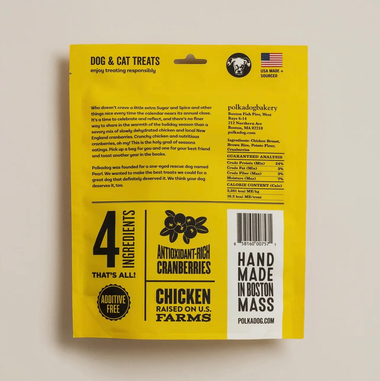 We all like a little Sugar and Spice when the calendar nears its yearly close. And there's no finer way to share in the warmth of the end of the year time than a savory mix of slowly dehydrated chicken mixed with local New England cranberries. Crunchy chicken and nutritious cranberries, oh my! This is the holy grail of holiday goodness. The perfect holiday stocking stuffer!
