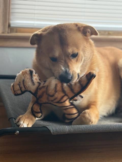 This toy also contains our Power Weave Technology - A heavy Duty fiber making it more difficult to puncture. This is also a rip and reveal toy - when they finally get inside there will be a logo tennis ball to keep playtime going.