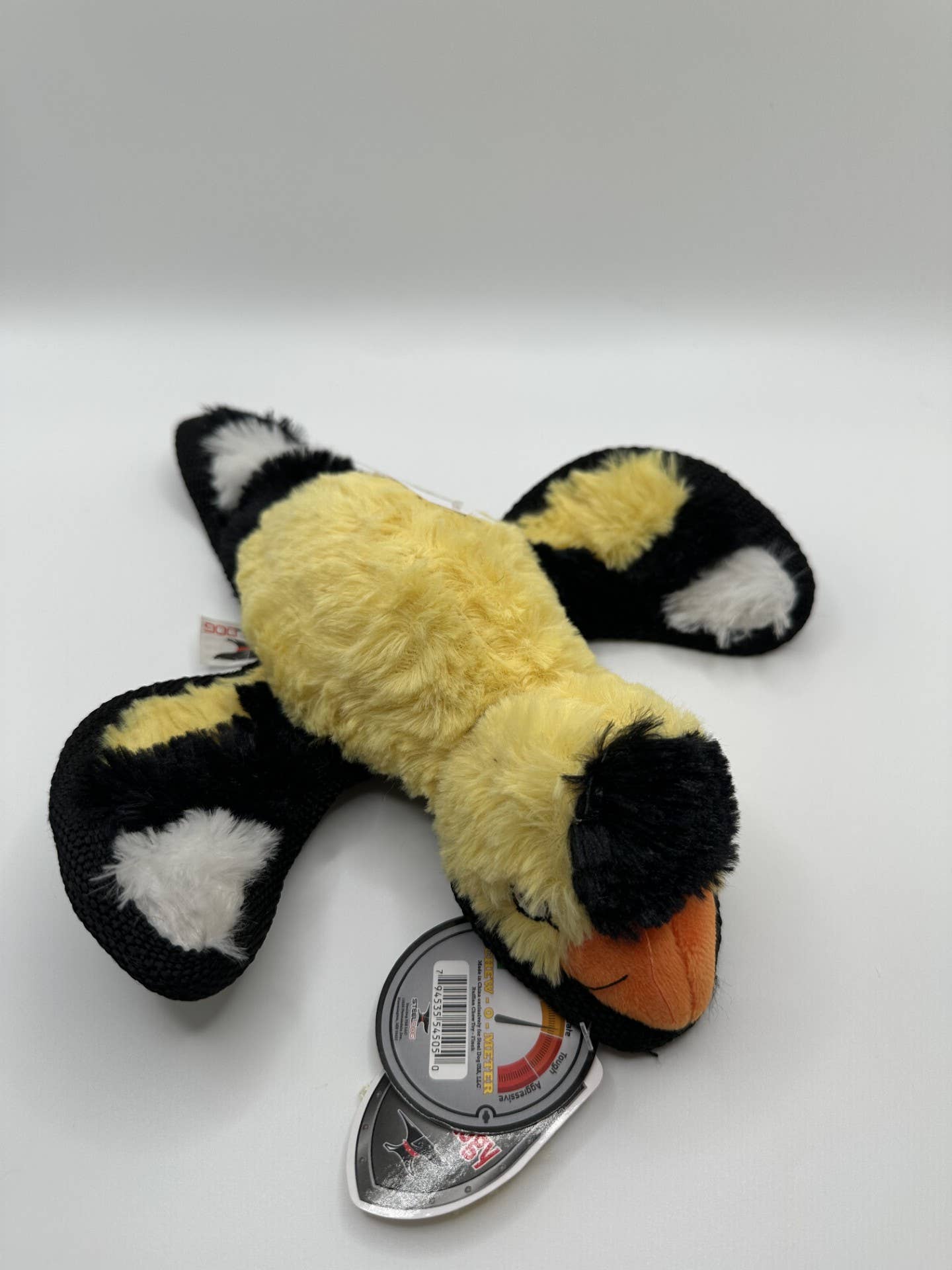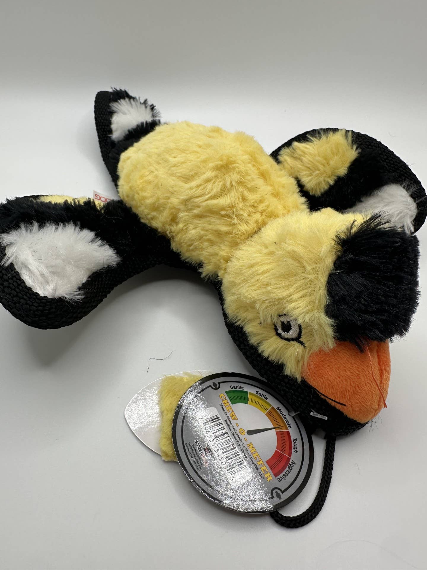 Our Ruffian Yard Birds are built for the smaller fellas with big attitudes. So get them while you can, because these birdies are going to fly off the shelves. The Yard Birds are a medium plush toy that features heavy duty seams, a squeaker in the head, crinkle in the wings, steel shield technology and a small dog safe tennis ball in the body. They are such a versatile toy and will be sure to be your four legged friends best new buddy.