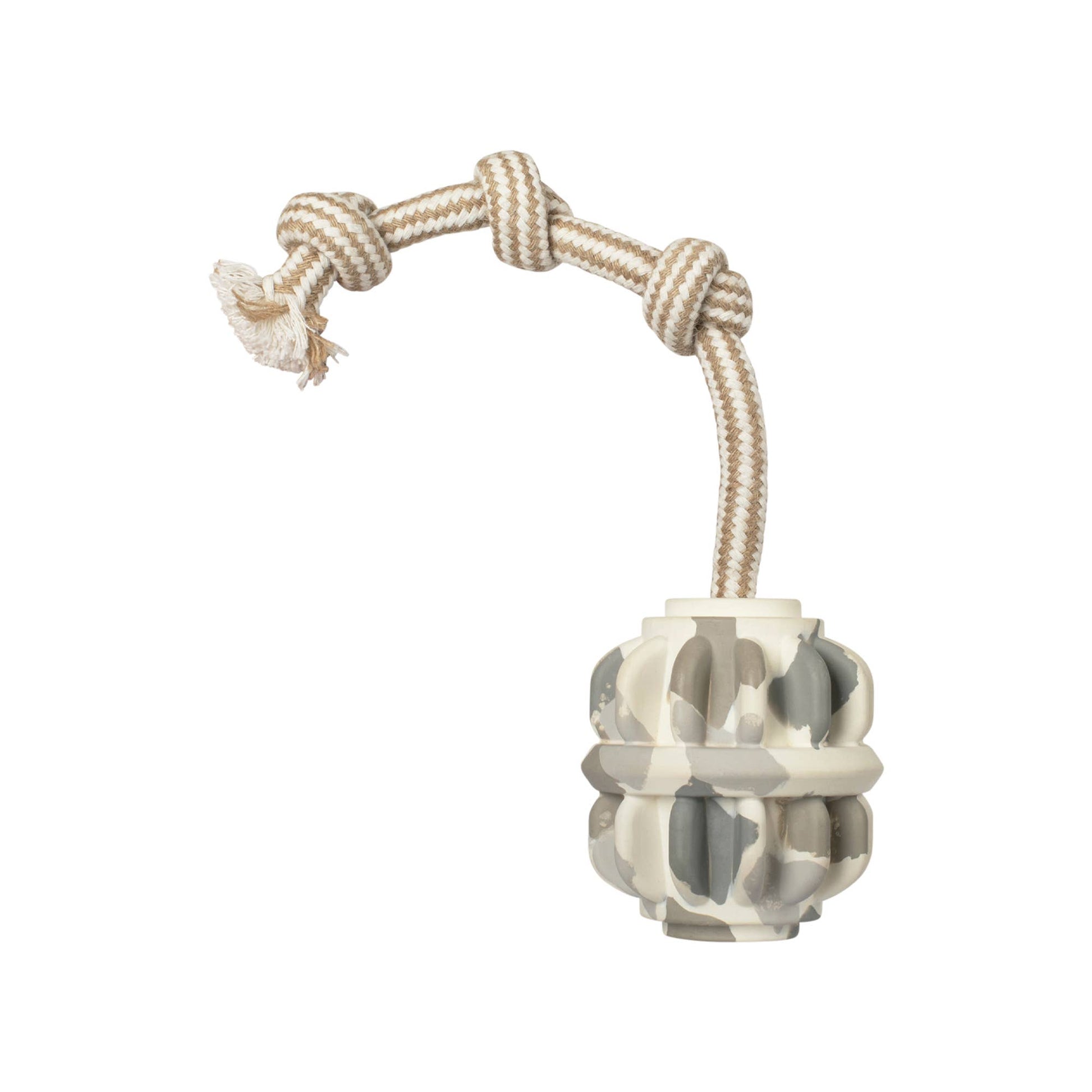 PetShop by Fringe Studio's “Shape-Shifter” dog toy is the perfect playdate for your pup. Crafted with a collage of uniquely colored natural rubber pieces, artists focused on making a durable toy with an artful appearance that complements modern home décor. Features include tuggable rope, erratic bounce, a treat dispenser, and a lick mat exterior for versatile playtime functions. Whether you tug, toss, or fill it with treats, this toy will blend in perfectly wherever your pup plays.