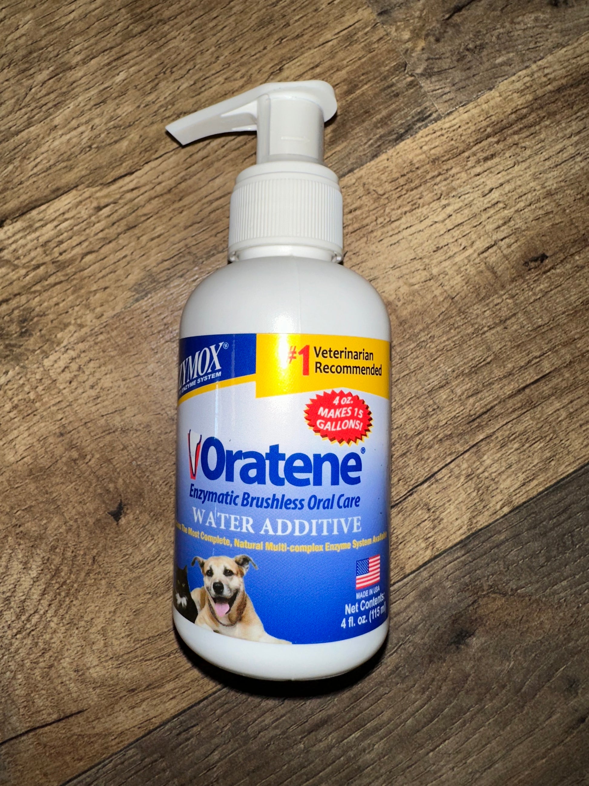 Brushless enzymatic, oral care therapy, dental jail. Supportive, oral health for all pets, including: Pets with cancer or chronic illness, plaque, and gum, disease, on medication, infants to seniors, with bad breath, etc. Flavorless concentrate added daily to drinking water provides a safe, healthy way to conveniently clean pets teeth, freshen breath, kill germs, and remove plaque without brushing.